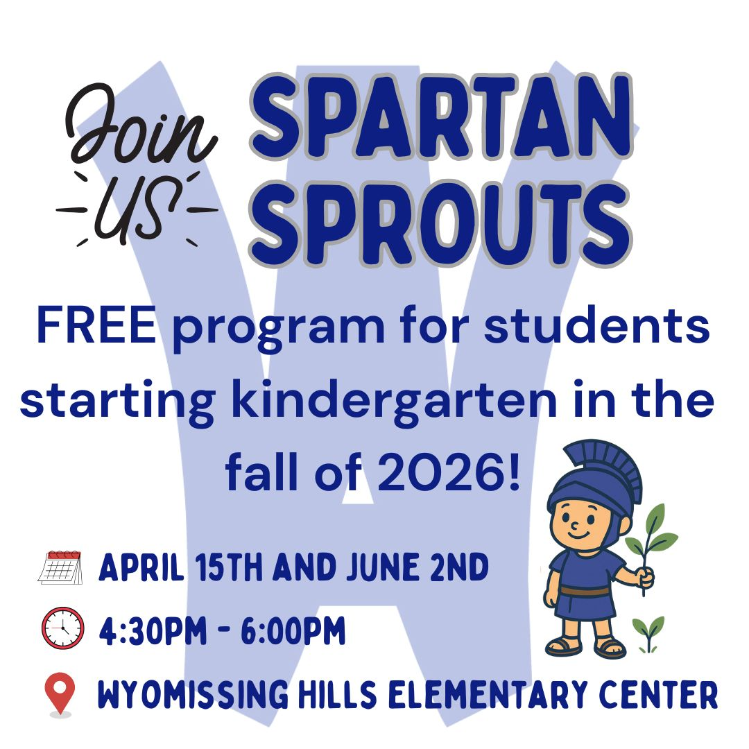 Do you have a child who will be starting Kindergarten at Wyomissing Area School District in the fall of 2026? We invite you to Spartan Sprouts!Spartan Sprouts is a FREE program for incoming Kinderg...