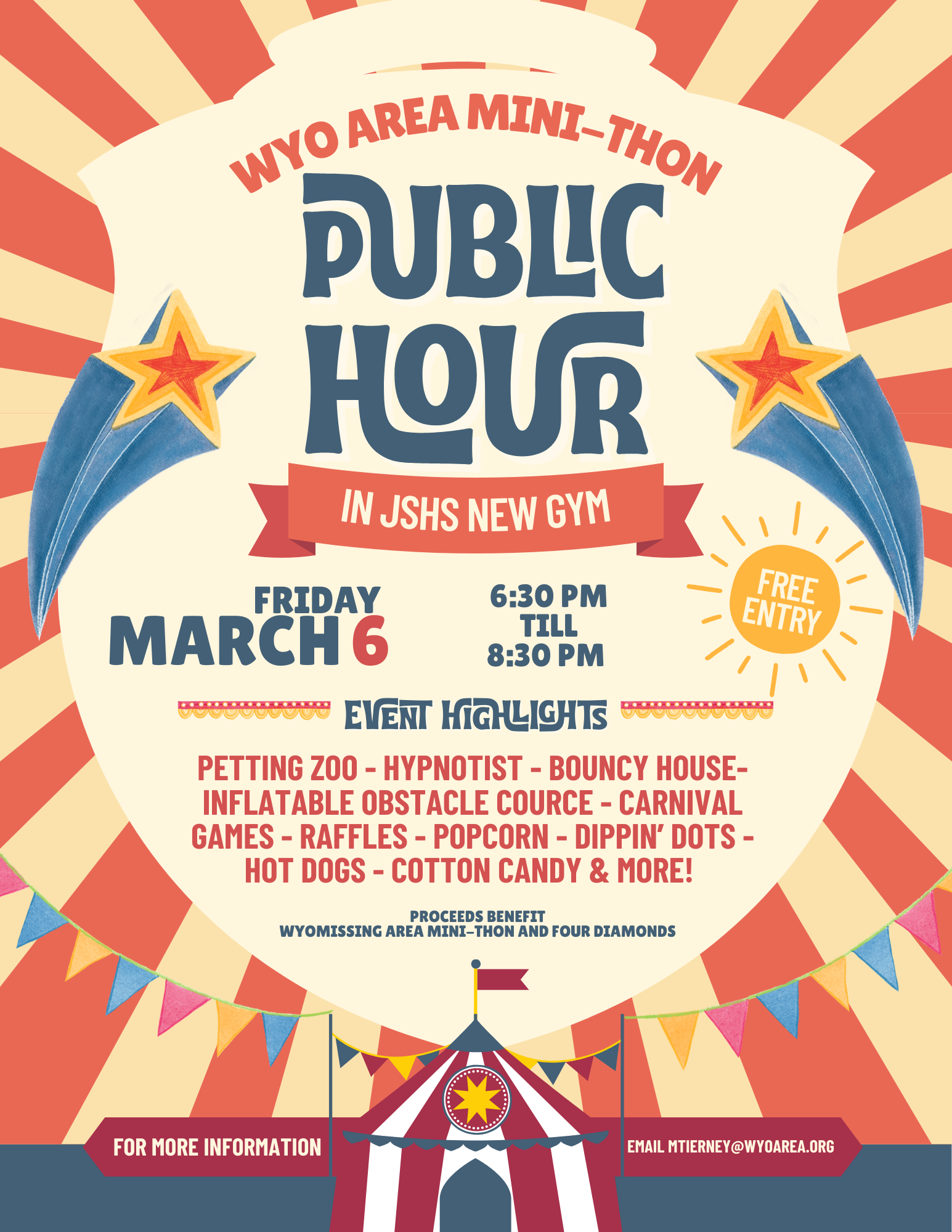 ⭐ Mark your calendars for this year's Mini-THON Public Hour, this Friday from 6:30 PM - 8:30 PM in the JSHS New Gym! Main attractions include a magic show, petting zoo, bounce house, inflatable obs...